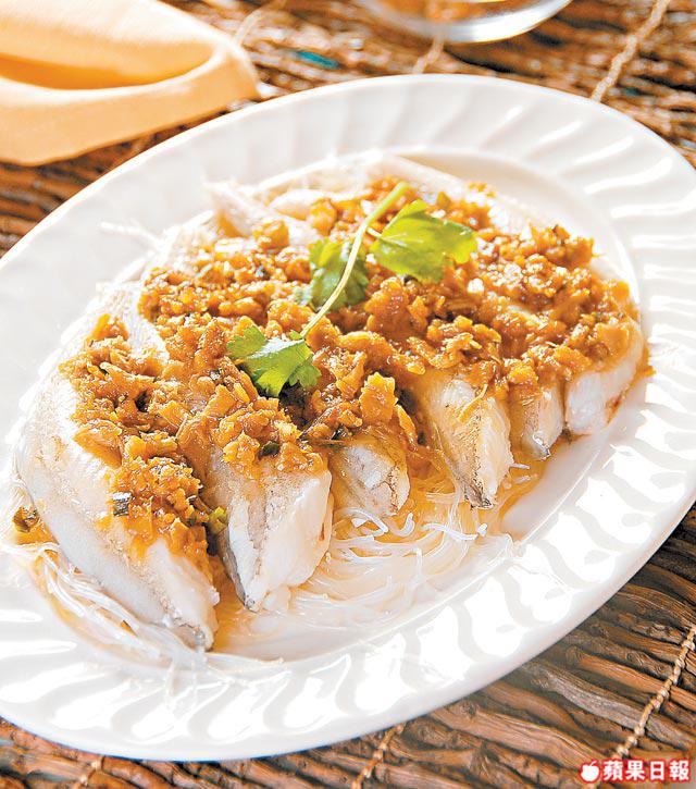 1.粉絲浸軟,置碟底。九肚魚洗淨劏好後放於粉絲上。