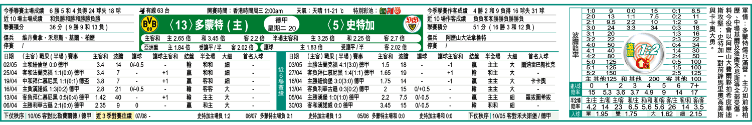 史特加要「保歐協、爭歐聯」,因此在周二的德甲作客多蒙特時雖然犯了作客讓波的大忌,但後者近況麻麻又傷兵多,更只是踢風流波,一於取讓平/半的史特加上盤。