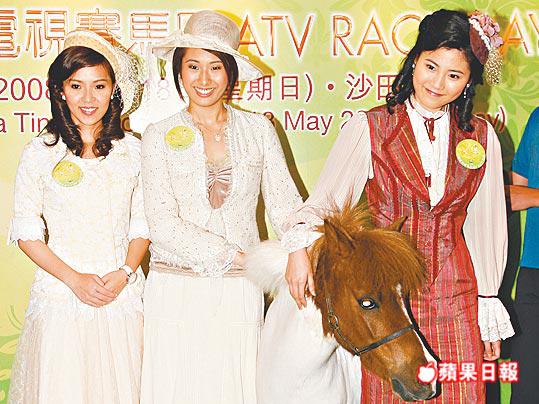 亞姐張家瑩及亞視藝人陳少霞、珈潁及戚黛黛等,昨日到跑馬地出席《亞洲電視賽馬日2008》記者會。以一身黑色紳士服裝出現的張家瑩首次以男裝示人,她笑說:「我個造型差一支士的就係魔術師。」她透露初次踏足馬場,她說:「香港係全世界賭馬最盛行嘅地方,如果有機會會試吓賭馬。」