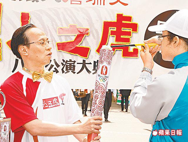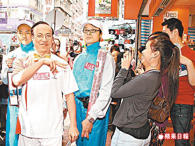 奧運聖火上周五於香港傳遞,大批市民沿途歡呼吶喊。聖火本已轉到內地傳送,昨日卻突然出現在旺角,更有疑似煲呔曾擔當跑手,原來是詹瑞文宣傳《男人之虎》,圍觀市民看見都笑不攏嘴,但有阿伯嫌他阻街,罵他黐線。