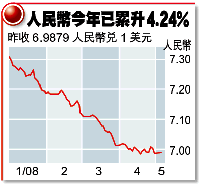 美元疲弱,令人民幣滙率看似長升長有,兌美元升穿「7算」是轉捩點,令不少存戶透過銀行設定「日日換2萬」的指示,持續將港元換為人民幣存款。