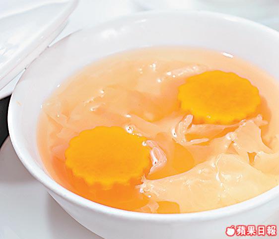 濃湯以牙揀翅骨、雞、豬骨等熬足10小時,配海虎翅及滑溜的山瑞裙,湯味濃又能保留翅及山瑞裙的味道。