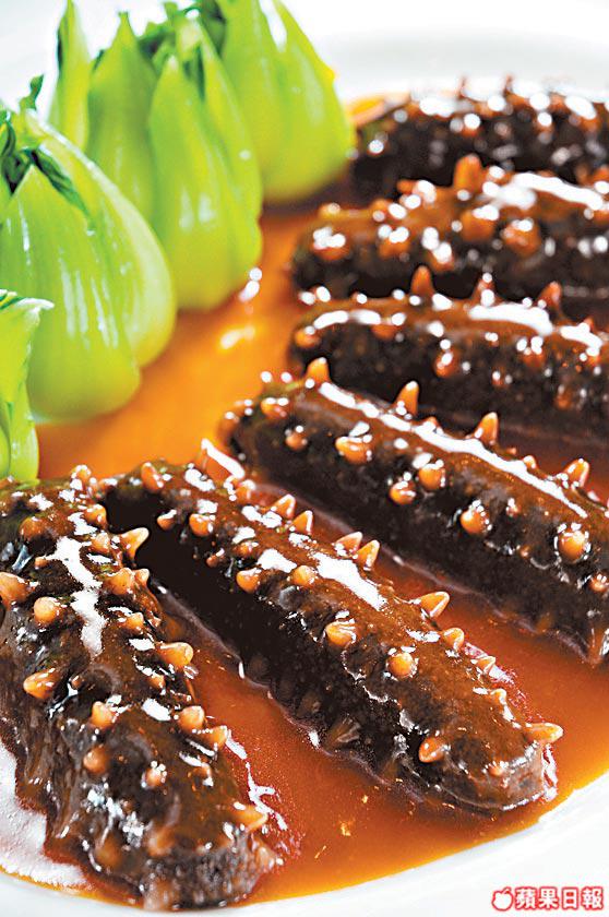 大廚把關東遼參扣至入味後,再配濃厚蠔油芡汁,以提升鮮味。