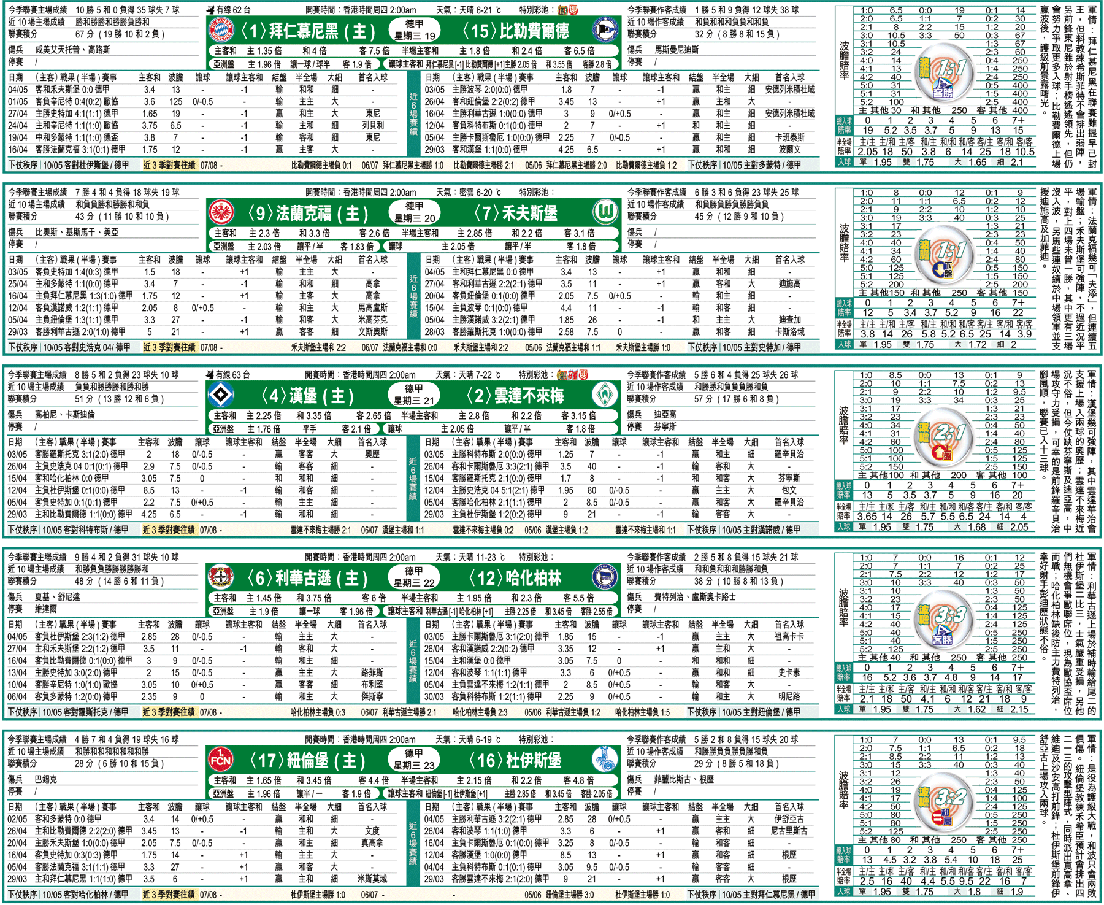 另外,不來梅攻力雖強(31場聯賽入67球),但防守卻非常嚇人,竟然失了44球,可見由梅廸薩卡及拿杜領導的防線不可靠;而今仗他們更少了芬寧斯作第一道屏障,料會有更多漏洞,並讓主隊球員有機可乘。