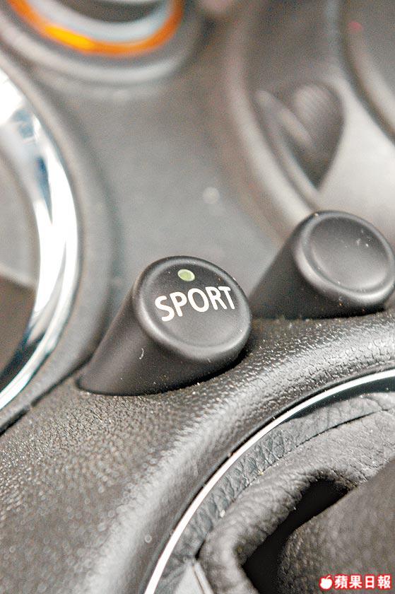 MINICooper一直係潮人至愛車款,最近代理又搞搞新意思,特別幫佢加多一個SportButton;只要你㩒一㩒呢粒掣,將Sport模式啓動之後,油門反應會變得爽快,6前速Steptronic半自動波箱嘅轉檔時間,會快Comfort模式約0.5秒,而軚盤亦會變重,轉向反應同時變得更直接,從而令性能表現增強之餘,亦可讓你有如揸小型賽車嘅快感。