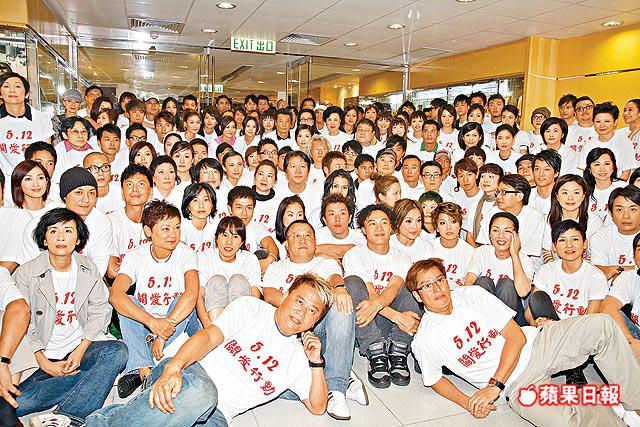 亞洲電視昨日派出劉錫賢及吳嘉星等,到尖沙嘴為宣明會作賑災籌款,市民踴躍捐獻,亞視也將於後日舉行《四川大地震──齊心抗天災》賑災節目,明日則會播放綜合今次地震事件及最新情況的新聞專輯,本月25日則舉辦祝福音樂會,集合六大中港媒體演出;商業電台則於今明兩天假時代廣場舉行露天直播節目,請來天文台台長林超英及聯合國兒童基金會代表講述地震情況。