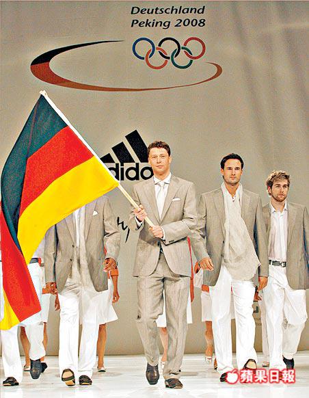 德國奧運隊早前在杜塞爾多夫舉行奧運制服發佈會,由現代五項選手華特拿作持旗手帶領一眾隊友行天橋。路透社