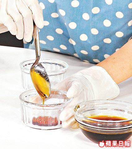 汁料:沙律醬4湯匙、白醋1湯匙、糖2湯匙、煉奶2茶匙、水2湯匙