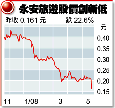 永安昨早復牌,股價最多瀉近39%至0.131元;收報0.161元,仍跌22.6%。