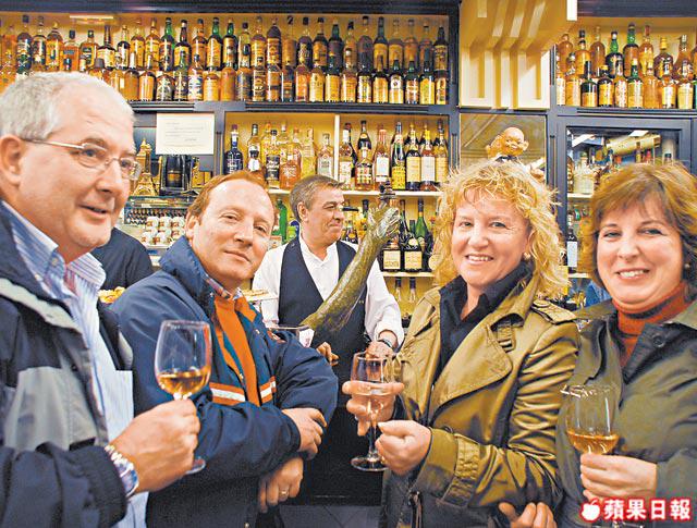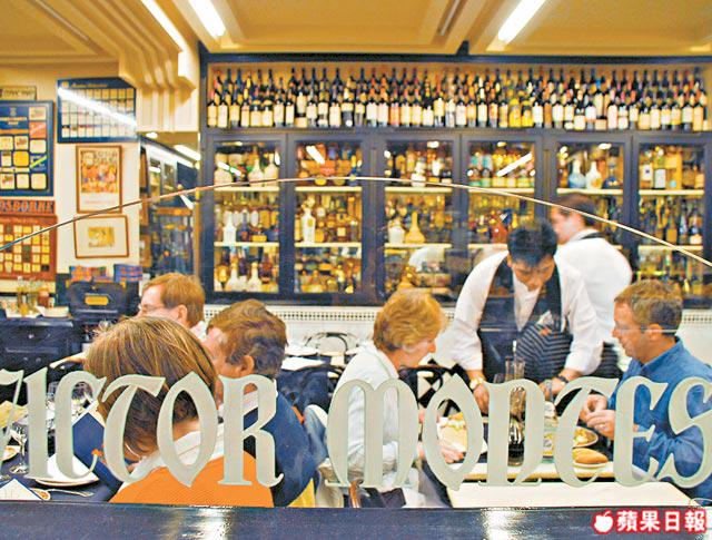 其中一家VictorMontes最多人,個個進來都得吃他的蝦Tapas,滿滿的蝦子淋上特級初榨欖油,而其他Tapas款式也多,如Txistorra辣香腸、Idiazabal芝士、野生蘑菇甚至松茸都有。我戇居居夾着Tapas又不知要飲甚麼酒,酒保跟旅客猛撩我說西班牙語(我說我不懂!他們還是拿着酒杯在我面前隊來隊去),好啦好啦!原來他們是想問我要配Rioja、Txakoli或Cider,最後我挑了杯西班牙生啤酒,一杯下肚凍冰冰的是說不出的爽。最巴閉是他們威士忌藏酒量,以古典的Cognac及威士忌為主,像最早期的GreatRiojaWine就來自1890年,超過一百年歷史。餐廳還分了一半做酒吧,最近還開了自家的朱古力櫃。晚餐分7時半及10時兩場但因為只得幾桌,必須最少兩天前預約,令我只能眼巴巴站在玻璃前逼着吃銀鱈魚。