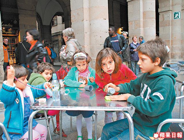 到小酒吧吃Tapas本來就是西班牙的地道文化,在西班牙北部畢爾包(Bilbao)的中央廣場PlazaNueva,晚上八時多九時,廣場裏滿是小朋友跑跑跳跳,有些則坐在地上呆等。