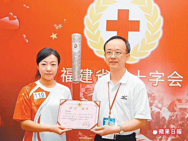 她表示,希望港人繼續為四川災民出錢出力和為災民祈禱,「希望喺地震失去父母嘅小朋友,可以堅強咁生活下去。」火炬的底價是30萬元,但短短個半小時後已急升至55萬元,拍賣期為一星期,善款將撥捐香港福幼基金會,予地震斷肢災民作安裝義肢用途。