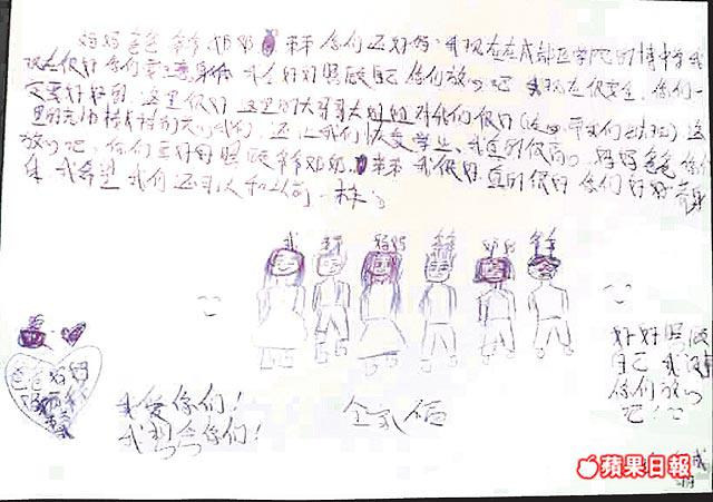 也許,是成羽不願去猜測父母遭遇不幸才會這樣說。不過,她卻在家書中真摯地期盼:「我們一家人開開心心的笑,像以前一樣。」