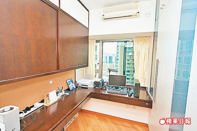 單位牆身隱藏不少家具,包括簇新牆飾板及入牆櫃,提供大量貯物空間。其中客廳薄身入牆櫃,設計精緻實用,驟眼看難以察覺是一個大型儲物櫃。另外,主人套房面積十分闊落,私人空間充裕,轉角大窗為整個房間帶來充裕的光線。另一間睡房則佈置成書房,屋主為增強空間感,將書房門特別改用玻璃趟門,每當經過走廊時,更感寬敞明亮。
