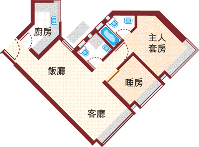 間隔:2房2廳(1套房)