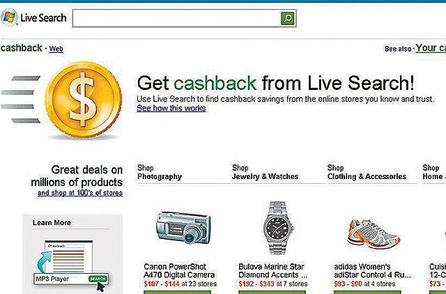 用戶利用WindowsLive搜尋器連結的相關商戶購物,60天後沒退貨,就可獲現金回贈。