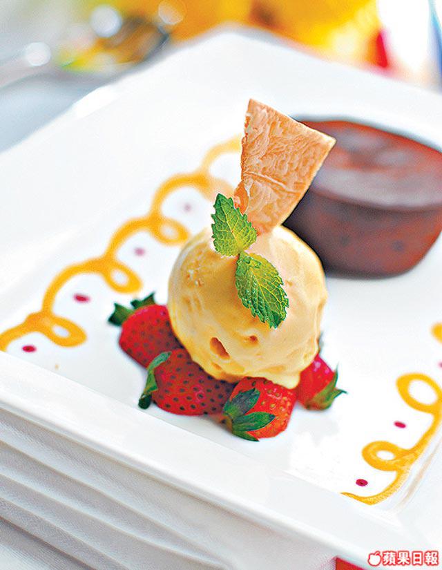 甜品是朱古力心太軟蛋糕配呍呢拿雪糕,朱古力味香濃,入口一冷一暖很舒服。