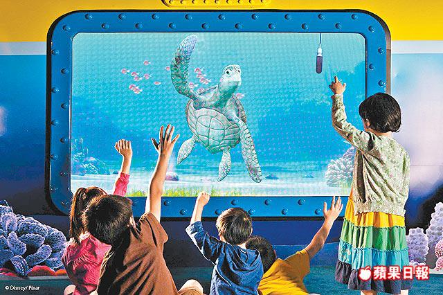 聽落好似幾好玩噃。雄雄話,成個互動設施運用咗先進嘅數碼投影同即時聲能動畫技術,將現場設計成動畫電影《海底奇兵》咁嘅款。擔大旗嘅主角係150歲的大海龜阿古,佢會同大家玩遊戲,講吓海底嘅趣事,「仲會教人講海龜話㖭。」