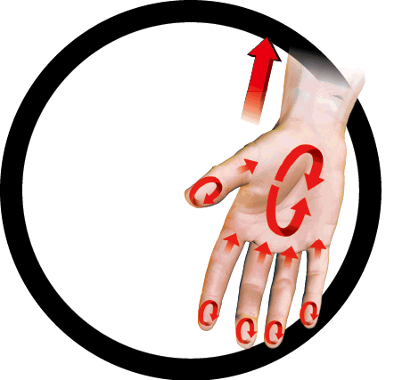 註:以上僅為部份手法,進行時應塗上油或蠟等潤滑劑,若皮膚稍硬,可先用力打轉令皮膚鬆軟,患者按自己身體需要進行右邊或左邊身淋巴引流。