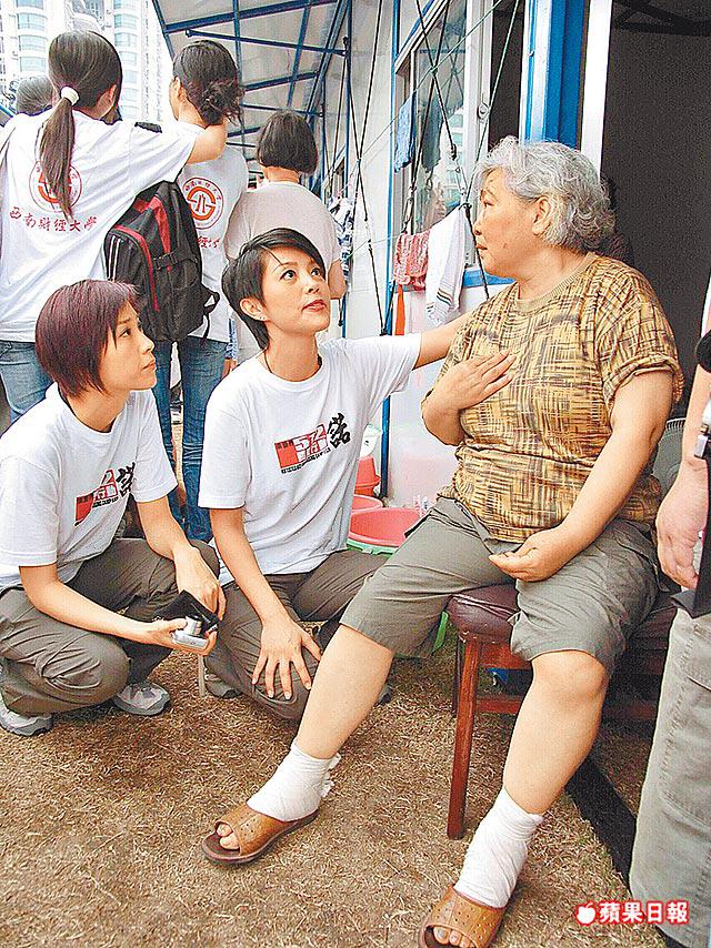 問保怡會否擔心有餘震?他說:「唔擔心,嚟得一切有心理準備。」至於陳芷菁與災民交談時,有些災民表現激動地說:「看電視知道香港演藝界很熱心籌款,場面很感動,我忍不住哭出來。」