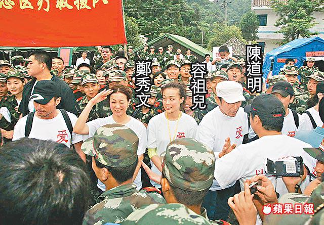 鄭秀文發言時也感激救援人員連日來在災區作出的貢獻,她臨走時還大喊:「中國加油!」華仔則表示:「班軍人反應咁好,我真係好感動,忍唔住滴咗一滴眼淚。」後來他們又到一個小學遺址向現場救援人員打氣,不少災民聞風而至,在解放軍與武警包圍下,華仔向救援人員敬禮,他表示:「辛苦你們了,請加油!」