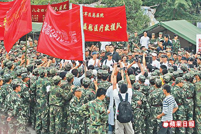 他們驅車到了向峨鄉四個軍營為500名軍人打氣,當軍人見到中、港明星,都相當歡迎,華仔向在場軍人說:「你們辛苦啦!你們要加油!加油,堅持下去,災民靠你們啦!」現場軍人不斷向華仔鼓掌喝采,場面十分激昂、感人。