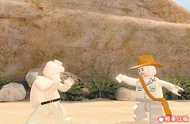 除了主角,其實場景內大部份物件都會LEGO化,所以遊戲主要使用3D環境。而人物雖然係LEGO,但竟然都有表情,例如鍾斯博士那個招牌笑容,只要加點想像力,都幾似㗎!至於佢喺遊戲內最常用武器係皮鞭,用來打人之外,仲可以當作道具使用,例如繞過障礙物、抓取物件及按動控制桿等。不過電影內鍾斯博士都唔係一個人就可以過關,所以遊戲會安排一個拍檔畀佢,部份關卡需要利用到拍檔嘅特別能力才可通關;最特別仲係這個拍檔可以由電腦控制,亦可找個朋友操作雙打,合力過關。