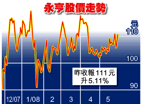 受賣盤消息刺激,昨日永亨股價逆市上揚,一度高見115元,收報111元,急升5.11%或5.4元。