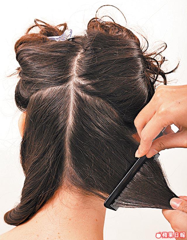 1.先把頭髮分成上下左右4個部份,並用髮夾定位。