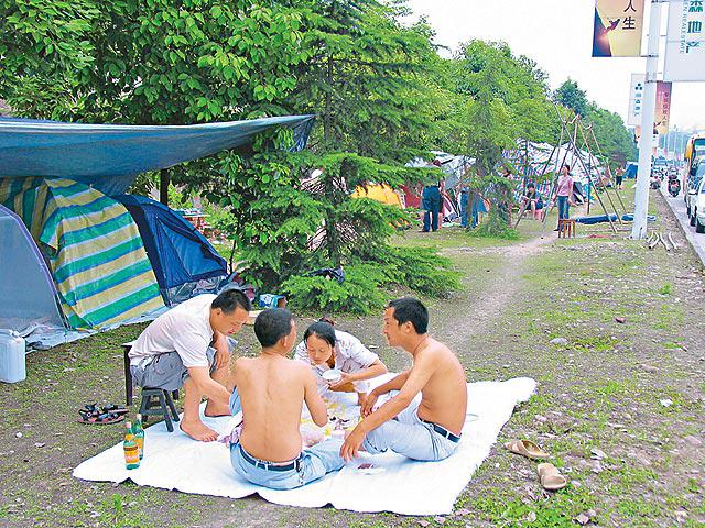 「這幾天市民都給餘震震出來了。」綿陽的士司機李先生稱,近日接連發生5至6級餘震後,市民都在提心吊膽,他現在白天在家睡覺,家人替他把風,一旦有大餘震馬上叫醒他,晚上他開車拉客,到深夜就睡在車上,而家人則在外面住帳篷。李又稱,綿陽市民現在怕洪水比怕地震更甚,因為上游地區的堰塞湖一旦崩堤或炸堤洩洪,市區最高洪峯將達12米,城區部份樓房將淹至兩三層高。雖然當局洪災24小時前會鳴警報通知,但許多人前日已搬到圓藝山等高地躲避。而記者昨日在綿陽市地勢較高的公路上,見到約7公里路旁兩邊已搭滿了帳篷。據悉,水淹綿陽城區時,將有數以十萬人要往高處逃難。