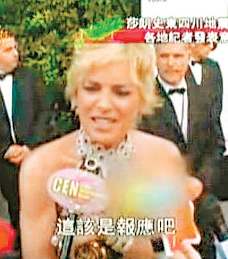 莎朗史東上周四(22日)在康城出席活動,被中國傳媒問及對四川大地震感受時,說自己「不喜歡中國對待西藏人民的方式」,「他們對達賴喇嘛不好,而他是我的好友」,「我在想:(地震)這些事是否因業的報應嗎?」。