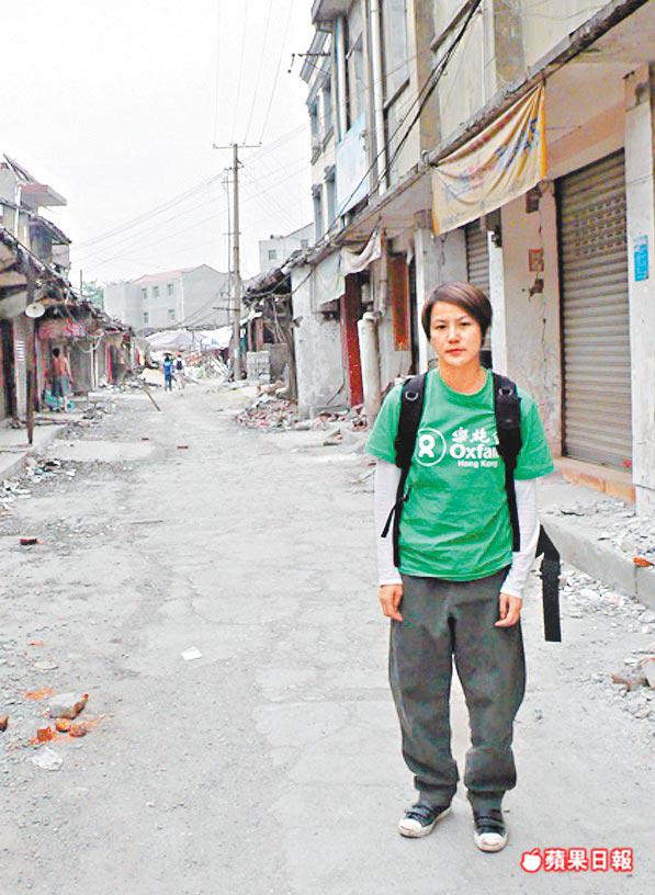 從照片所見,阿詩到過不少地方,包括重災區都江堰及秀水鎮,途經的地方建築物幾乎全都塌下,而村民只能數人同居於小型帳篷,故阿詩也呼籲fans踴躍捐款助當地重建。