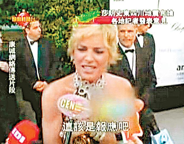‧在康城指中國對待西藏人不好,達賴喇嘛是她好友,反問四川地震「不是因果報應嗎?」