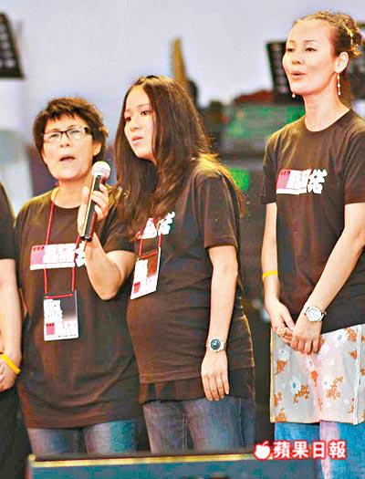 一班基督徒合唱時段,腹大便便的鄺文珣也亮相獻唱支持,她與其他表演者手拖手演出,雖然肚子相當大,但行動尚算自如。早前被指遭曾志偉三度玩弄的黃家強,昨日也到場傾力演出。