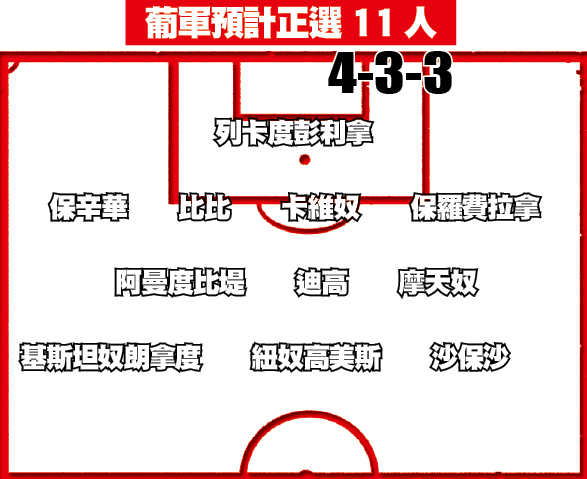 葡萄牙第二次公開操練安排在周日,他們入住的酒店也已經圍上黑帆布和鐵絲網,讓球員可以專心休息。據悉,在周二近兩個小時的操練中,教練史高拉利在訓練賽排出正選11人陣容(見附表);正選之一的保辛華操練後說:「有球迷支持,我們更加有動力。」綜合葡萄牙外電