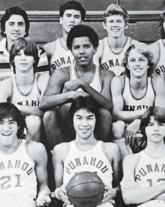 1977年奧巴馬(第二行中)與中學籃球隊隊員合照,他最愛打籃球。美聯社