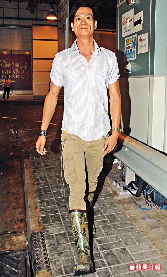 其中一名自稱從事時裝業的四眼中坑穿條子恤衫配高腰小喇叭牛仔褲,高舉自備沙槌博影相,其間他突然搭着女記者肩膊說:「可唔可以同你影張相?」。另一名中坑叔叔也相當超班,他以馬褲襯圖案水靴抗黑色暴雨警告。