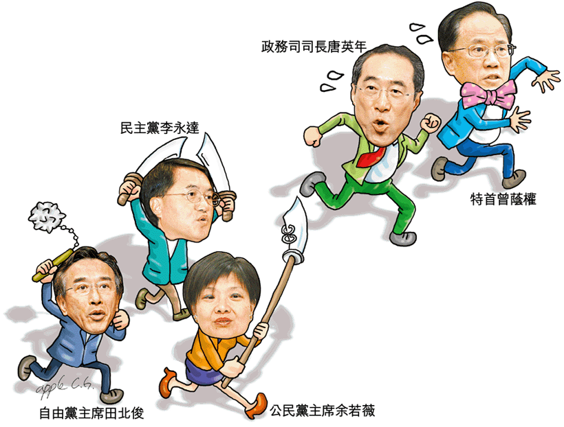 民主黨李永達昨日表示,泛民已決定展開「五部曲」跟進副局長和政治助理國籍和薪酬問題,分別在本月16日政制事務委員會會議上,質詢政制及內地事務局局長林瑞麟。公民黨譚香文亦已「入紙」,申請在本月18日的立法會大會提出口頭質詢,要求政府交代副局長和政治助理招聘準則。泛民又會在本月20日的特別內務委員會會議,質詢政務司司長唐英年,並在本月25日的立法會大會引用《立法會(權力及特權)條例》,傳召特首辦主任陳德霖提交所有關於副局長及政治助理的薪酬及福利的文件,並在最後一場特首答問大會,當面質詢特首曾蔭權。