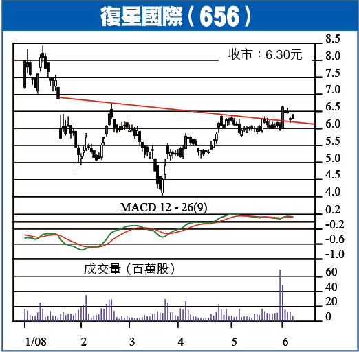 今年2月19日,推介復星,當時股價5.72元,短短3日內,升上6.73元,升幅達兩成。到3月29日再推介,當時股價5.28元,兩個月內已升上6.48元,升幅亦逾兩成,可繼續持有,亦可趁機會再上車,望再賺多兩成。