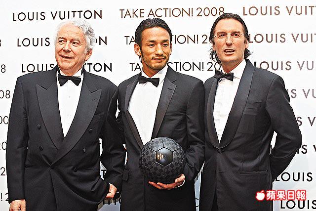 日本「國寶」球星中田英壽與法國品牌LV一向友好,前晚於東京RitzCarlton酒店為壽仔的慈善足球賽「TakeAction!2008+1FootballMatch」舉行慈善晚宴籌款,該品牌更捐出了最新的DamierGraphite圖案製成的足球連特製皮箱作慈善拍賣,極具收藏價值,而壽仔籌募得來的善款,將會用作環保用途,幫助剛果購買蚊網對抗瘧疾。