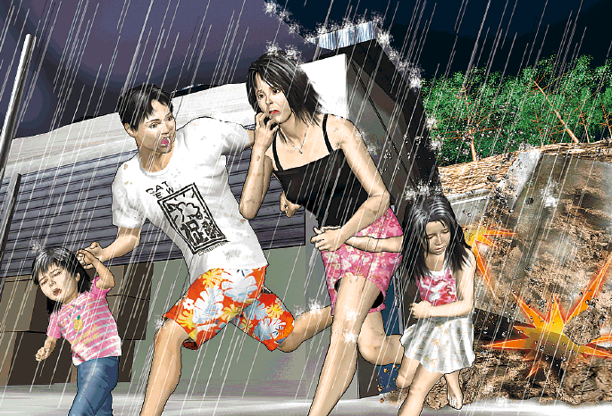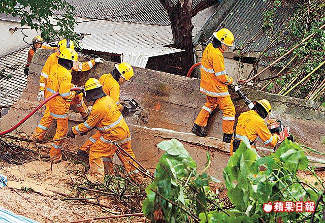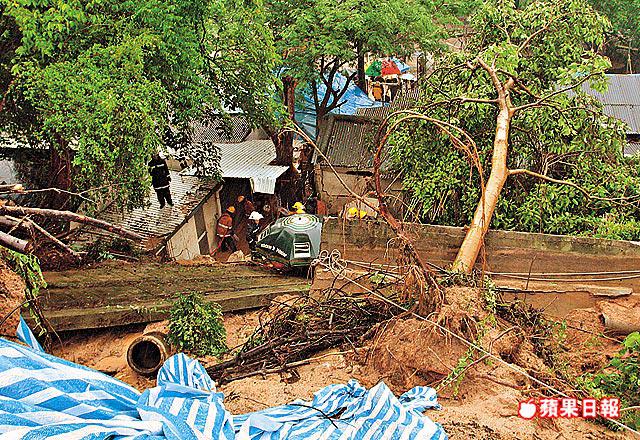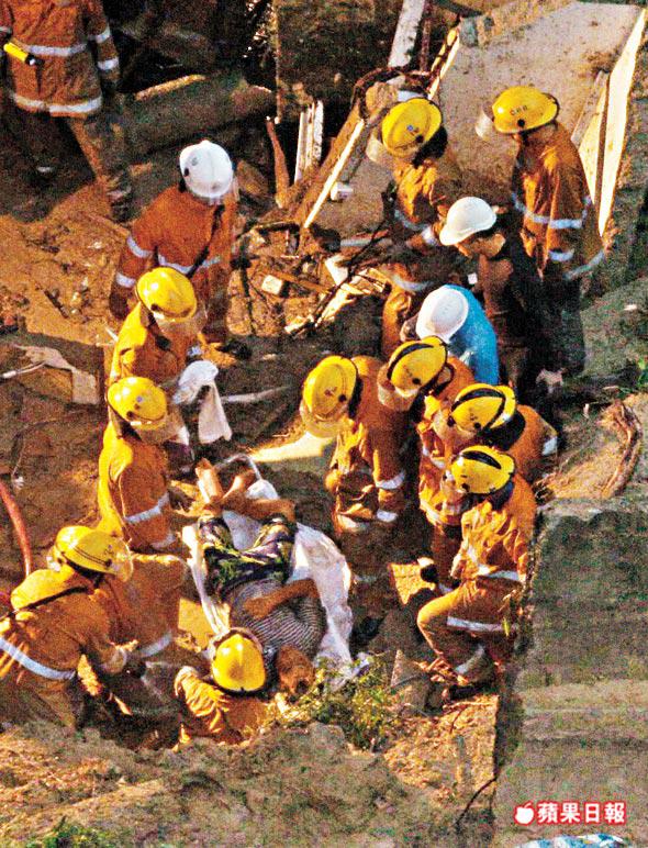 【本報訊】屯門舊咖啡灣昨在豪雨下發生奪命意外,一名內地離婚婦與前夫,留宿在孿生妹妹打理的燒烤場士多貨倉內,睡夢中被後山一幅20噸重護土牆塌下壓着,兩人被活埋瓦礫12小時才被消防員救出,但已證實不治。其妹「細孖」住在貨倉前士多,一家四口及時逃出。當看到兩具屍體被抬出時,細孖呼天搶地,搥胸痛哭。 記者:梁維建、江寶龍、吳國威
