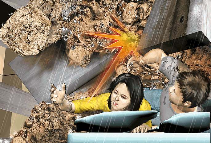 細孖與丈夫拖着兩名稚女走出鬼門關後,擔心大孖危在旦夕,竟不顧一切衝到瓦礫中徒手挖掘。安記士多東主練先生亦曾一度以硬物試圖撬開被壓的屋門,但因太多雜物不成功。