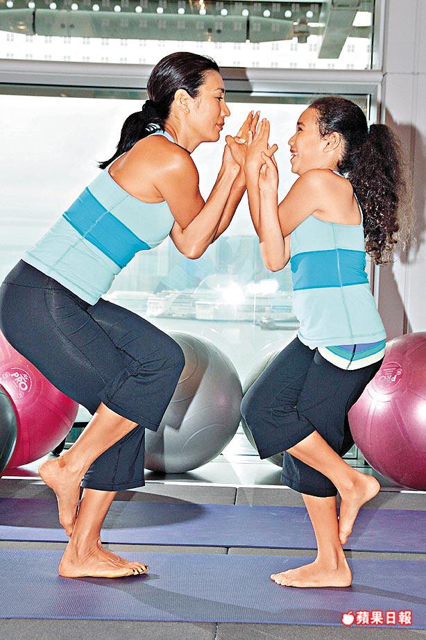 日前Almen帶同囡囡Camelot接受訪問,更大玩高難度的瑜伽動作,悉心糾正囡囡的動作之餘,並大談親子樂。其間小小年紀的Camelot十分好動,不時自發性嚷着要跑步,到健身室又玩Fitball,與母親一起做瑜伽拍照時,更充份表現出愛運動的細胞,而且不時表達意見,是一個有主見及外向的小女孩,絕對是母親自小薰陶好運動的成果。