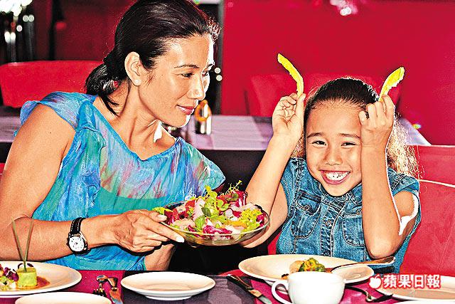Almen一家十分注重均衡飲食,她認為食得健康與勤做運動同樣重要,她說:「我哋以白肉為主,再加上魚,菜同雞蛋,以均衡飲食,而我日日都要一對仔女帶水果返校。」正如拍攝當日,Almen與囡囡都是吃以海鮮為主的白肉,伴以蔬菜生果沙律,務求攝取高蛋白質及高纖維,Almen說:「我哋可能一家人成日做運動,又食得健康,平時唔會特別食乜嘢補品,凉茶都唔會飲,已經好足夠,甚少有病痛。」