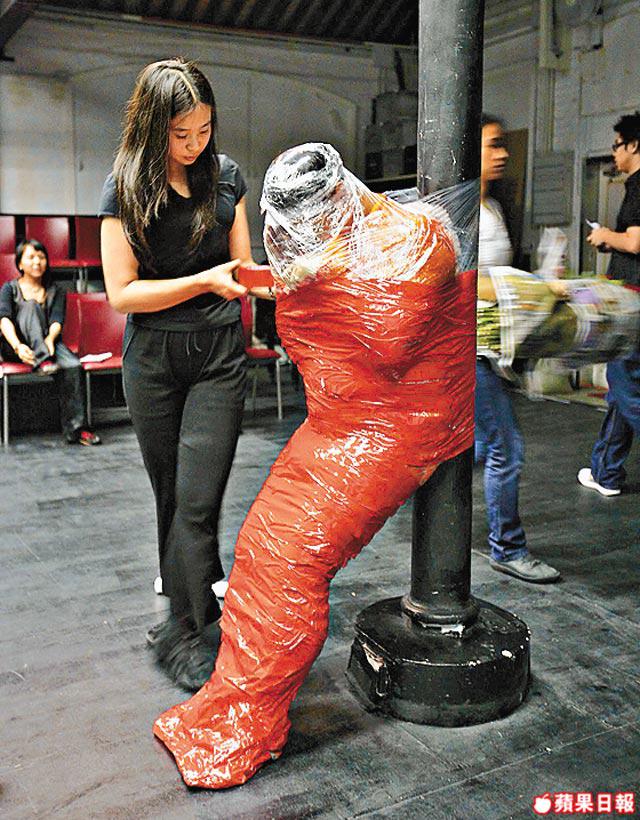 行為藝術家丸仔用紅色膠紙把自己包裹,「人蛹」系列作品,與日常生活的時間、空間倒行逆施,顛倒世間,他把自己做成人蛹,把人說成是可以脫胎換骨的生物,以結蛹比喻生命循環,比喻六‧四、512地震、戲棚。「你可以說我們所做與精神病人所為冇分別,只是我們在控制之內。」丸仔自從進入劇場,做起行為藝術,竟醫好了口吃的老毛病:「沒有藝術抒發,人會抑鬱好多,無論唱歌跳舞畫畫,藝術是最起碼的善意。」但當他變身人蛹之時,還是要有人從旁保護:「如果有人要插我一刀點算!」