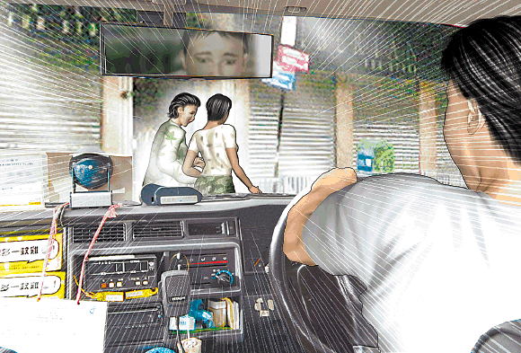 事發於昨晨6時許,姓吳(35歲)男子駕駛空載市區的士,車頭掛上「暫停載客」紙牌冚旗,預備交更,的士沿尖沙嘴麼地道向東行駛,右轉往漆咸道南時,突失控撞毀三米長鐵欄及交通指示牌,再鏟上行人路,剛巧姓梁(72歲)老婦與其28歲印傭晨運後前往品茗途中行經上址漆咸道南21至23號海景大廈門外,走避不及,當場被的士撞倒,梁婦被車身撞開,跌在大廈出口處,頭部受傷,印傭則飛彈地上左腳骨折,淌血俯伏地上暈倒,救護員到場為主僕兩人急救,俱送伊利沙伯醫院救治,其中梁婦傷勢已趨穩定,印傭則情況嚴重。