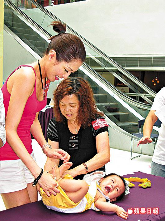 陳敏之、陳見飛和「扒女」李依琳等,昨日在大埔出席「新地BB龍舟車扮嘢大賽」,三女為BB換尿片、逗BB學行車鬥快時,雞手鴨腳,弄得現場BB哭聲四起,只有陳敏之稍為淡定熟手,她說:「我好鍾意BB,結婚同生仔係女人嘅完美人生,我35歲後希望可以生。」