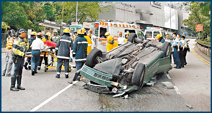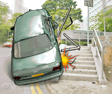 昨中午12時,一名62歲姓黎男子,駕駛一輛綠色90年出廠平治房車,沿紅棉路第四線上山行駛,當駛至上述美利大廈對開一條樓梯級旁時突然失控,右邊車頭猛撞向梯級邊斜台石壆,將一條三米鐵欄撞毀飛脫,並撞塌兩個道路標誌指示牌。有目擊女途人表示,當時突聞一聲巨響後,整輛車如拍電影般飛起,凌空轉了一圈半至15米外跌回地面四輪朝天。