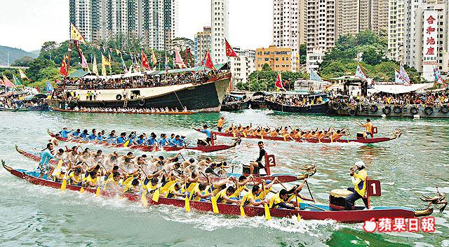 【本報訊】「咚咚咚咚……」昨天是端午佳節,赤柱、香港仔、西貢、大埔、沙田等多個地方共舉行了逾百場龍舟競賽。參賽健兒無懼驟晴驟雨的天氣,在擂鼓聲中奮力划槳前進。
