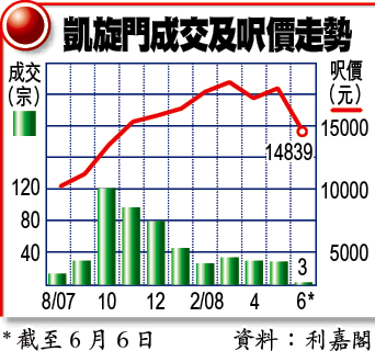 方偉業表示,上述為觀星閣低層G室,面積556方呎,僅設一房,成交價820萬元,呎價14748元。原業主於去年初以524萬元購入,持貨約一年半易手,獲利296萬元,升值56.5%。凱旋門本月至今已錄得3宗成交,平均呎價14839元。5月份有29宗,平均呎價達18157元。凱旋門現有約400個放盤,叫價每呎介乎1.4萬至6萬元。